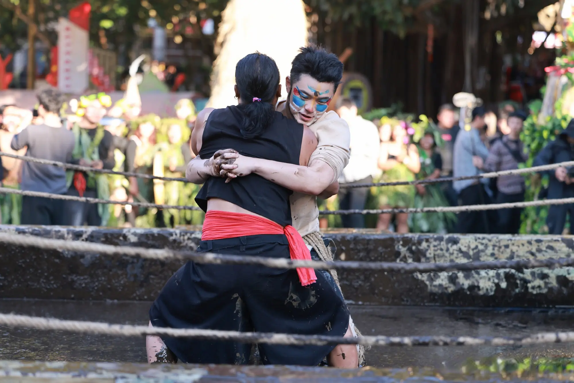 当然最高潮的部分还是在之后的“拍了萌”狂欢了,在这个环节里上演了力量与肌肉碰撞的泥潭摔跤。