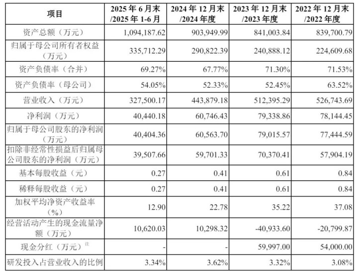 招股书显示,振石股份2022年、2023年、2024年营收分别为52.67亿元、51.24亿元、44.39亿元;净利分别为7.81亿元、7.94亿元、6.1亿元;扣非后净利分别为5.79亿元、7亿元、6亿元。