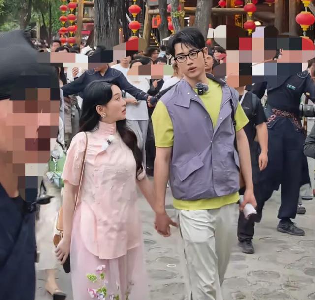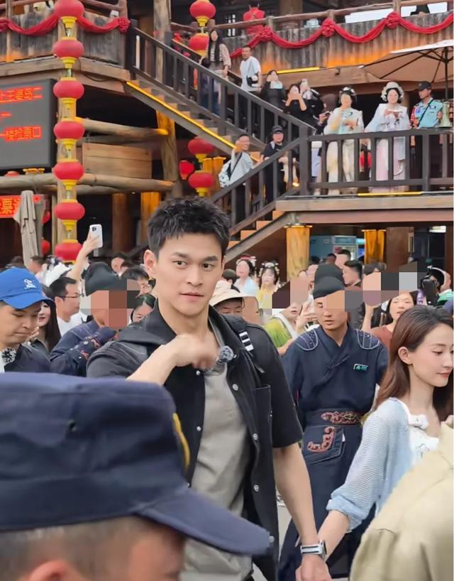 现场的游客很多,为了安全,景区方特地安排了不少工作人员形成护栏围在两边,金莎和孙丞潇走在前面,伊能静秦昊紧随其后,孙杨因为个子高,在人群中还是很突出的。