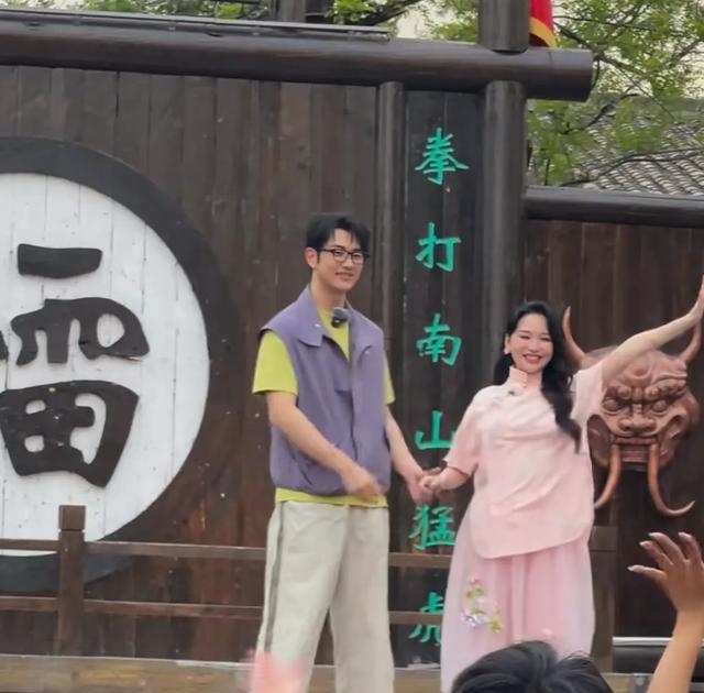 不过孙丞潇对待金莎还是很体贴的,还会提醒她小心脚下。金莎上台后,开心的和大家打招呼,拉着孙丞潇的手也始终没放开。