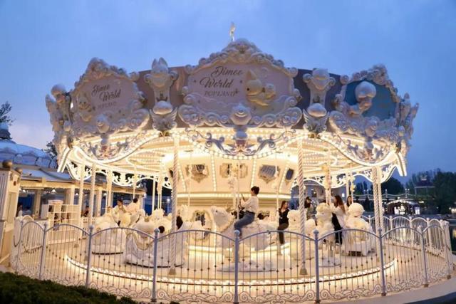 湖滨DIMOO主题区的“梦境里的回旋曲”“云朵上的华尔兹”,以梦幻飞椅、童话木马打造高颜值出片场景。